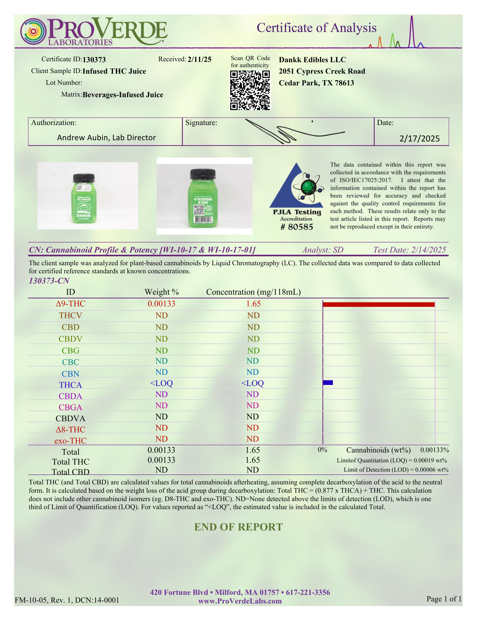 CERTIFICATE OF ANALYSIS (COA'S)